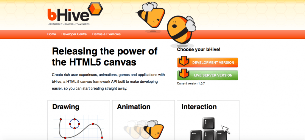 A great graphics framework that is as revolutionary to the HTML5 Canvas as Raphaël was to HTML4. bHive allows you to quickly create SVG graphics, animations, and even to incorporate interactivity which could be used in numerous different ways, such as simple games and education applications.